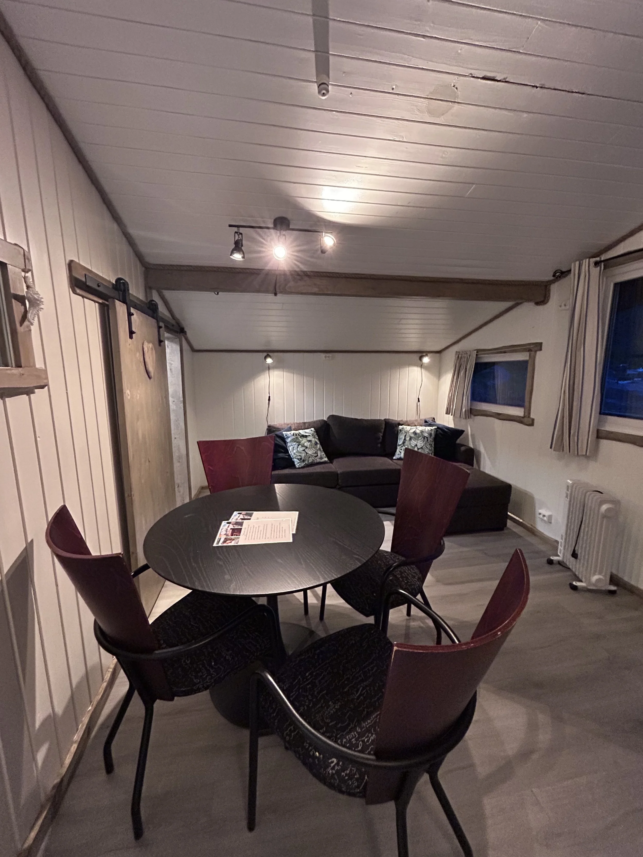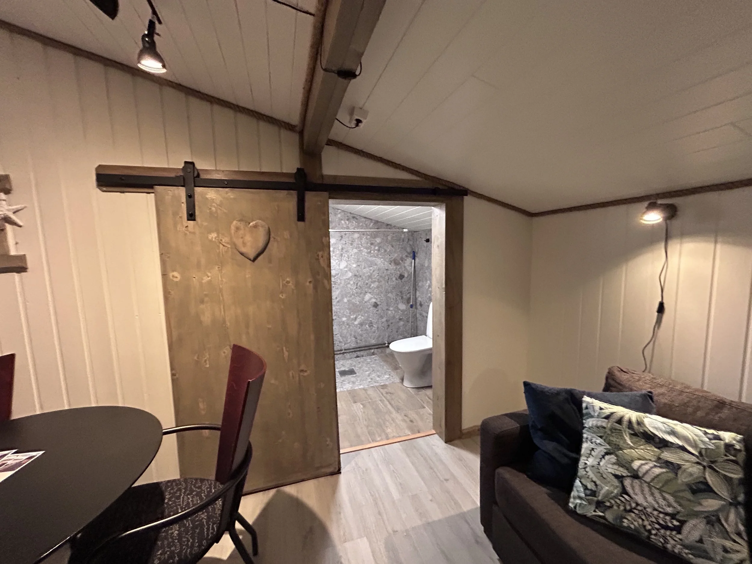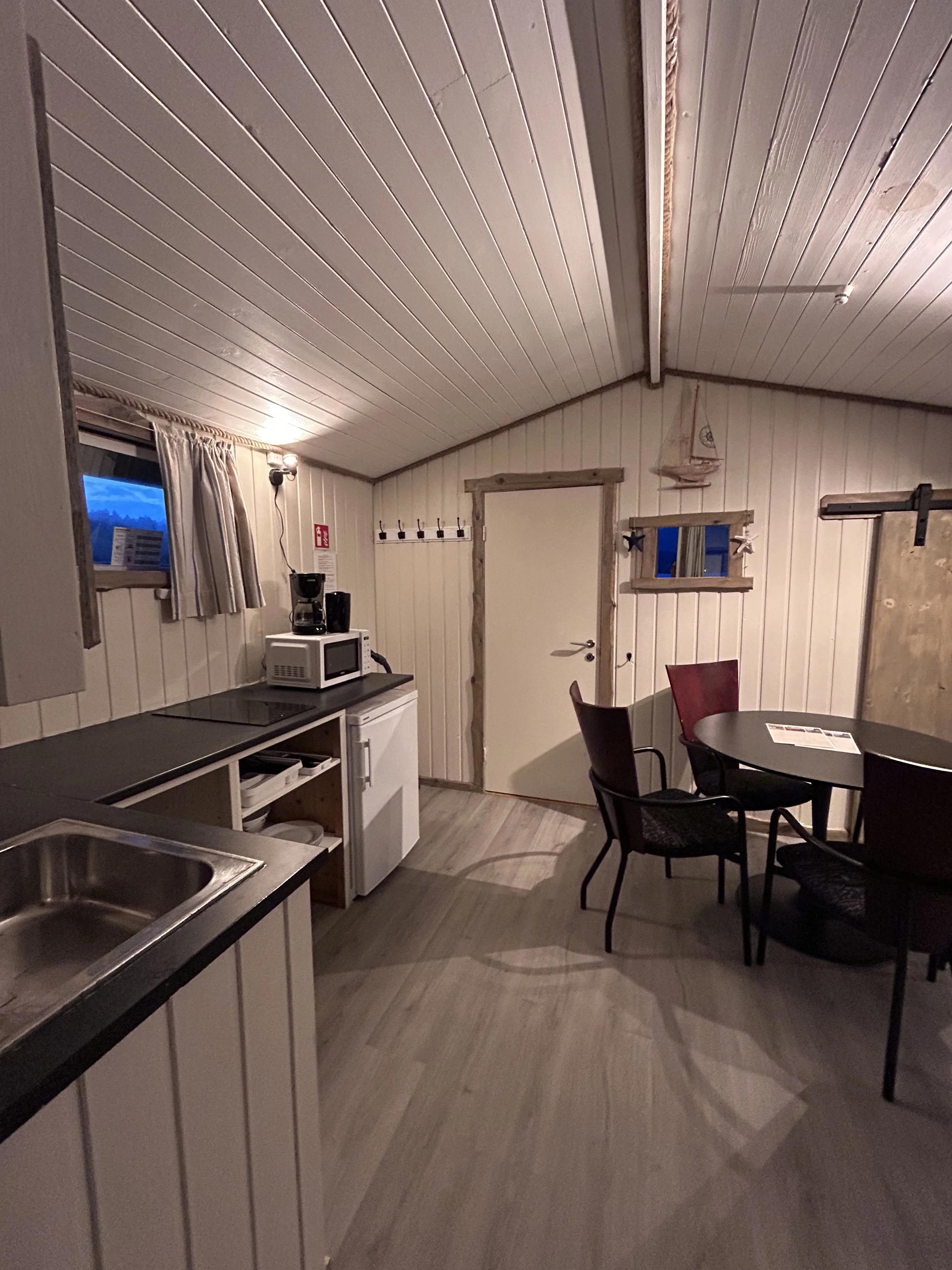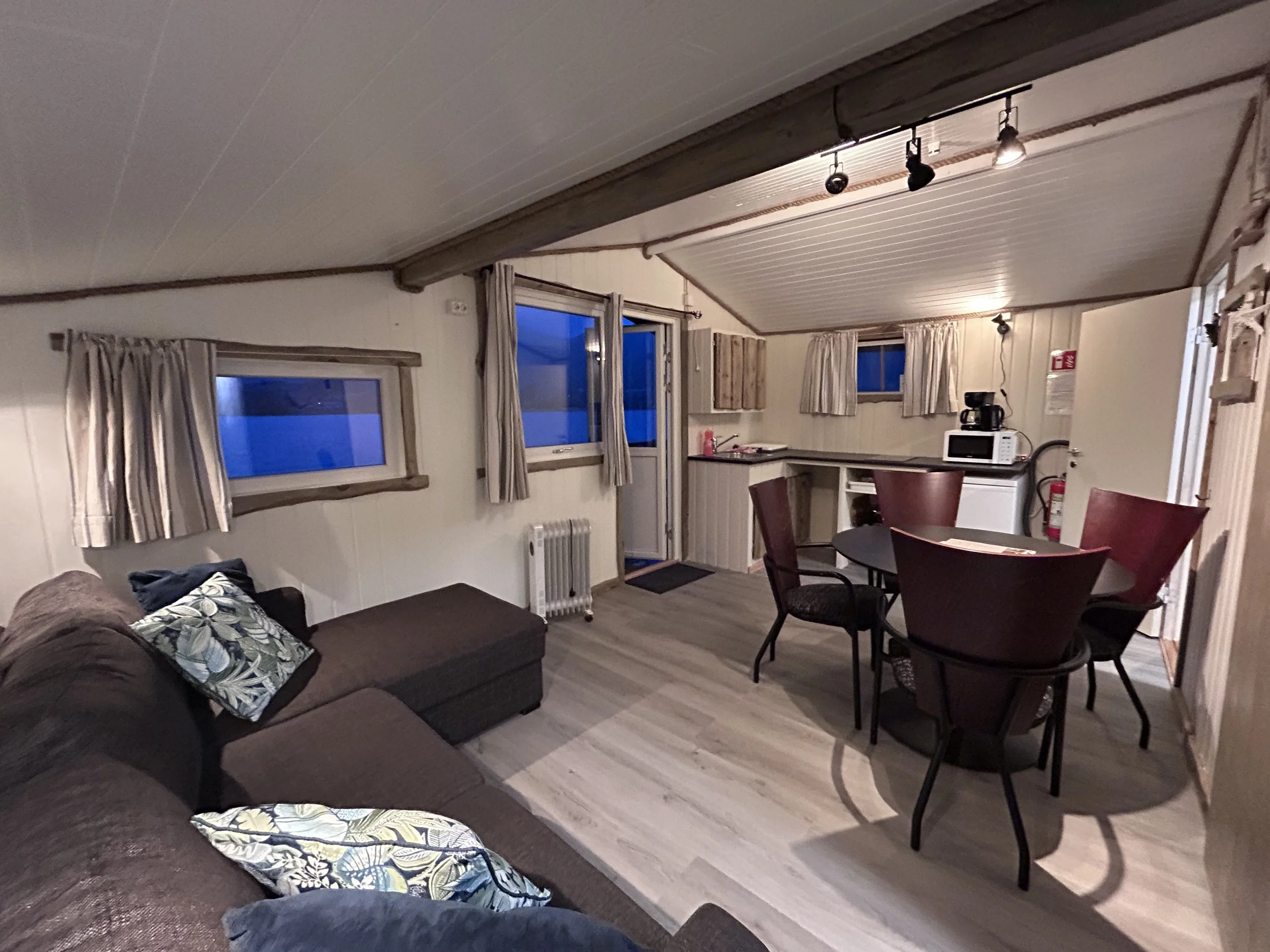 Cabin Six is a cozy and comfortable cabin perfect for up to four guests. Located at the far end of the campsite, it offers extra privacy and a peaceful atmosphere, right by the waterfront. From the private balcony, you can enjoy a beautiful view of the fjord and relax in nature.
